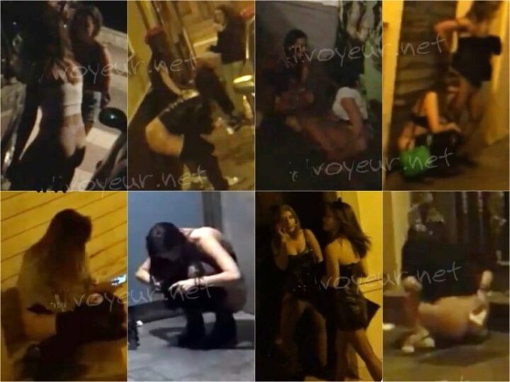 Beautiful girls pee all over the place,Filmed on the streets of Spain,
