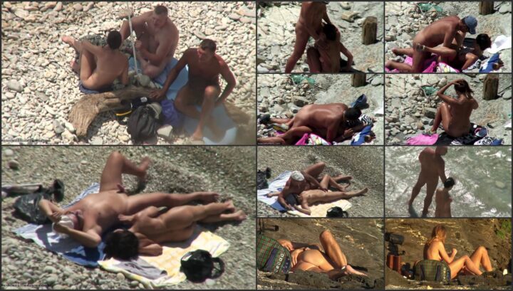 These two were fully relaxed on the nudist beach, specially the guy when he laid back and let his curvy woman suck his dick on that air mattress. Moments later she sat on his dick and voyeur saw everything.
